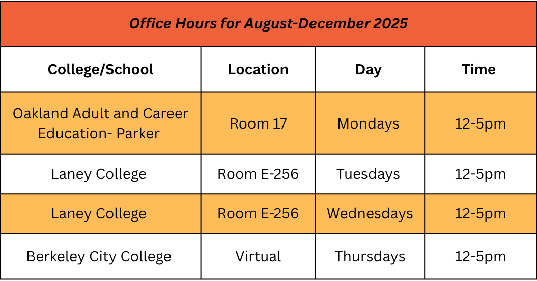 This process can get complicated, if the student needs support, please contact the Transition Liaisons of the respective college. For Oakland Adult and Career Education, you can register with them directly or when they hold their registration dates. |